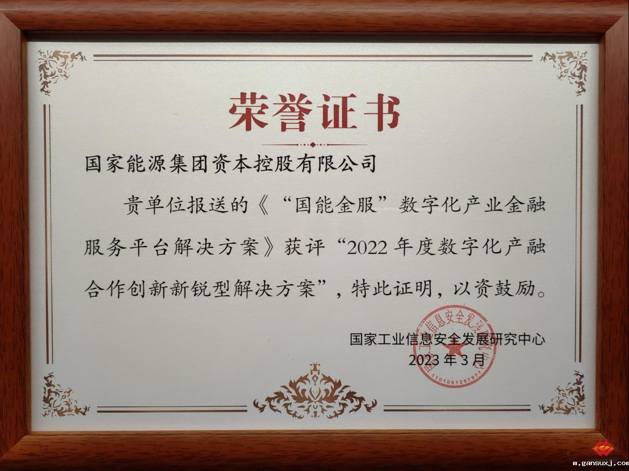 此外,资本控股公司还参加了大会组织的2022年度数字化产融合作解决方案发布仪式。资本控股公司“国能金服”数字化产业金融服务平台解决方案得到了业界的高度认可,成功入选了2022年度数字化产融合作创新新锐型解决方案。